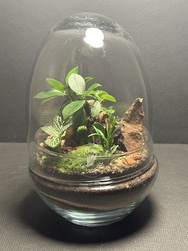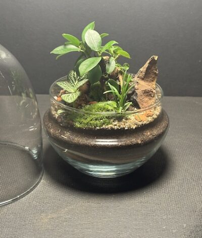 Plantes : mousses, Ficus Ginseng, Fittonia, Ophiopogon
