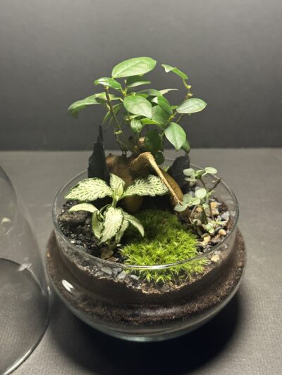 Plantes : mousses, Ficus Ginseng, Pilea Glauca, Fittonia